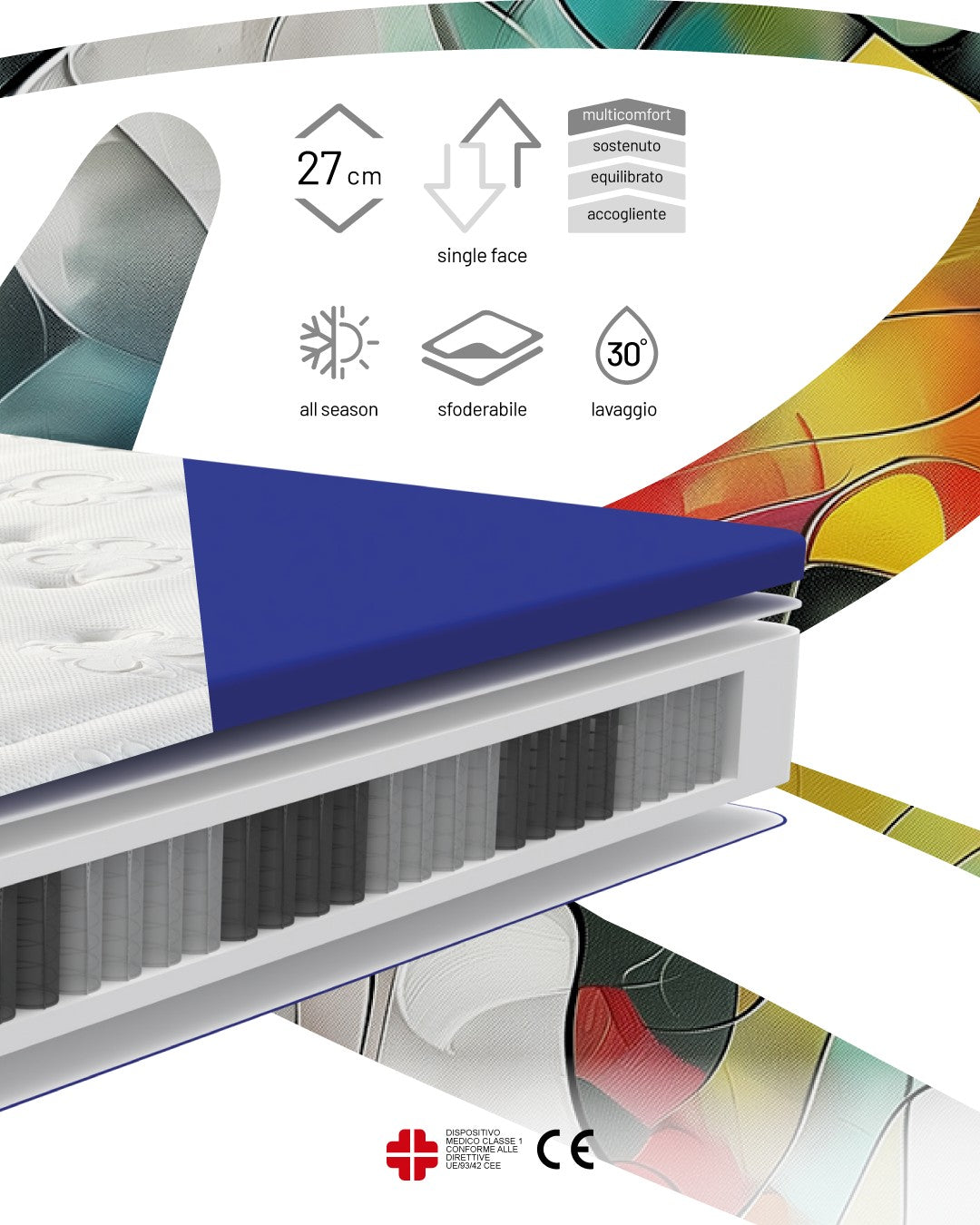 Die Antares Matratze von Rinaldi ist ein durchdacht aufgebautes Premium-Modell mit atmungsaktiven Hightech-Materialien, stützender MicroPocket-Technologie und optionaler Memory-Auflage – wahlweise fest, medium oder soft. Mit ihrer anpassbaren Innenstruktur, innovativer Luftzirkulation und medizinischer Zertifizierung ist sie ideal für anspruchsvolle Schläfer – 100 % Made in Italy.