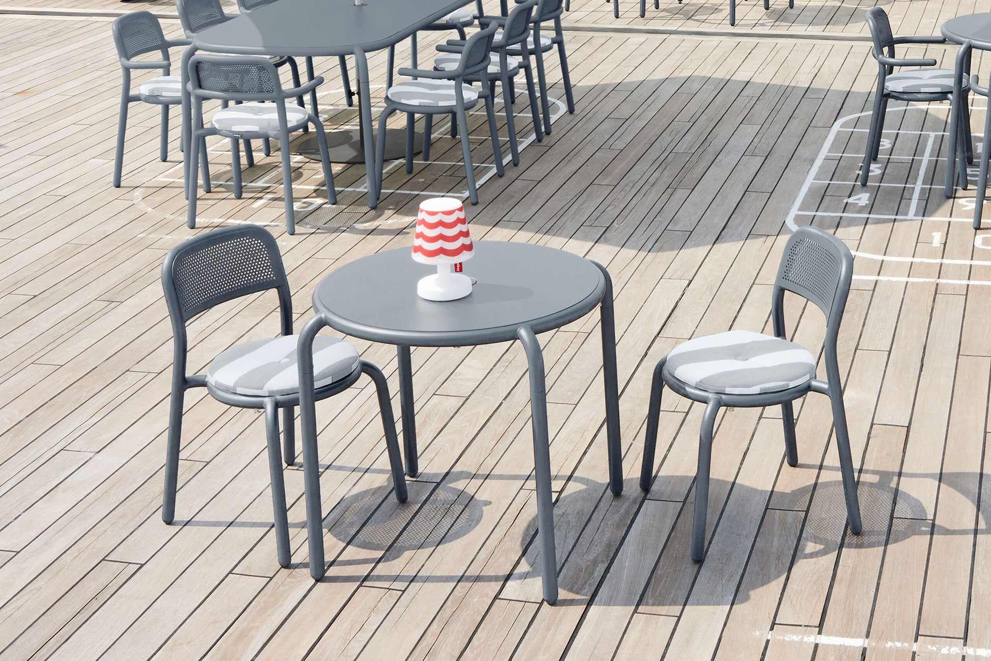 Der Fatboy® Toní Bistreau ist ein kompakter, stilvoller Bistrotisch für den Aussenbereich, der modernes Design mit hoher Funktionalität verbindet. Ideal für kleinere Terrassen, Balkone oder gemütliche Café-Ecken im Garten bietet er die perfekte Fläche für Kaffee, Drinks oder ein entspanntes Frühstück im Freien.